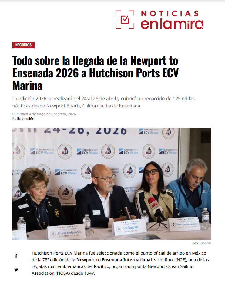 Noticias en la mira - Todo sobre la llegada de la Newport to Ensenada 2026 a Hutchison Ports ECV Marina10 feb1 Min. de lecturahttps://noticiasenlamira.com/negocios/todo-sobre-la-llegada-de-la-newport-to-ensenada-2026-a-hutchison-ports-ecv-marina/